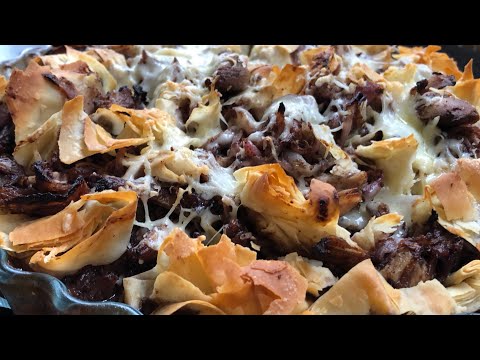مسخن الدجاج مع الرقائق المقرمشة Musakhan chicken Sumac recipe, with onions, crunchy filo dough,