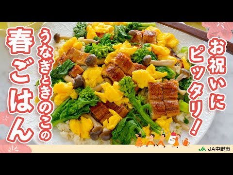 [ちらし寿司]春のお祝いごはんにぴったり!きのこやごはんにウナギの甘辛タレが絡んでおいしい【うなぎときのこの春ごはん】