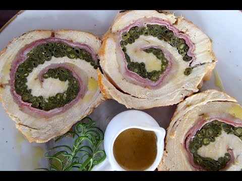 Rollè di pollo con prosciutto, formaggio e fagiolini