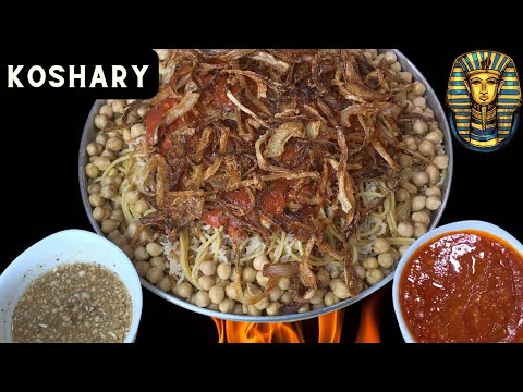 كشري مصري احلى اكلة نباتية وبصل مقرمش بدون دقيق 👌👌 Koshary recipe
