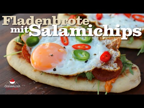 Fladenbrote mit Salamichips und Spiegelei - ein Snack wie er sein soll