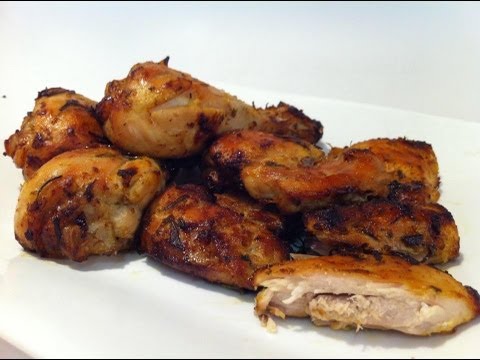 Marinate chicken in garlic, lemon zest, chives, thyme, oregano, salt, and black pepper before cooking.