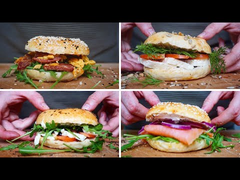 4 belegte Bagelvarianten | Sucuk-Ei | Lachs | Tomate-Mozzarella | Weißkäse