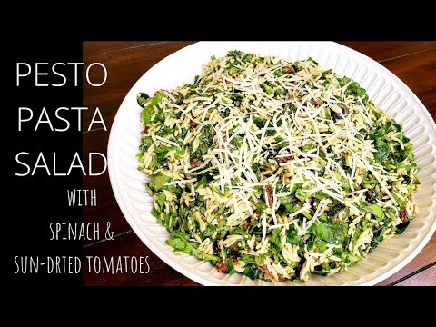 PESTO PASTA SALAD with spinach & sun-dried tomatoes | Easy 6 Ingredient Recipe | #happilyhomecooking