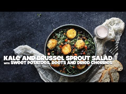 Kale and Brussel Sprout Salad Recipe with Beets and Fried Goat Cheese