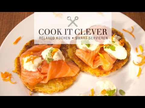 Rezept: Kartoffelpuffer mit Lachs auf Orangencreme