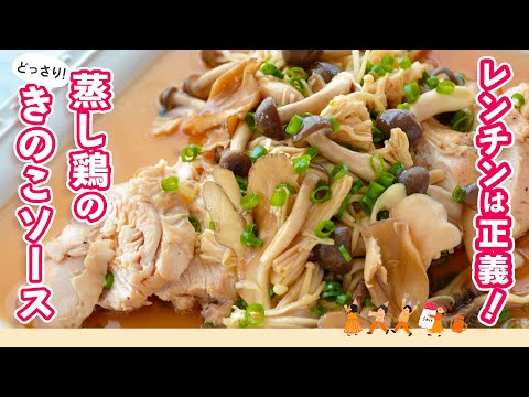 [レンチン完結]レモン汁が香る爽やか風味!きのこソースも蒸し鶏と同時調理で作るので簡単時短【蒸し鶏のどっさりきのこソース】