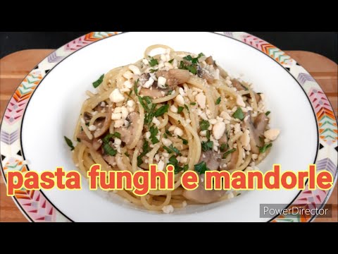 PASTA CON FUNGHI CHAMPIGNON E MANDORLE facile veloce e leggero senza panna ,ricetta vegetariana