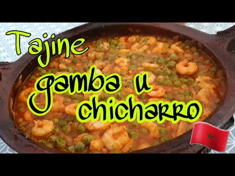 Recetas marroquíes: español cocina Tajine de gambas y guisantes