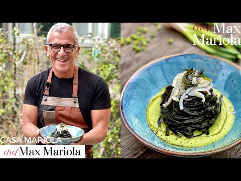 PASTA AL NERO DI SEPPIA SU CREMA DI PISELLI ricetta di @ChefMaxMariola