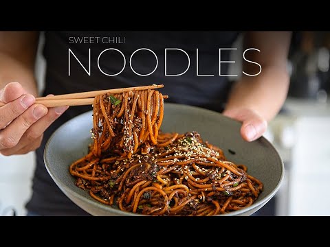 Yummy cooking chili noodle with hot dog and fried egg recipe - chili noodle with hot dog