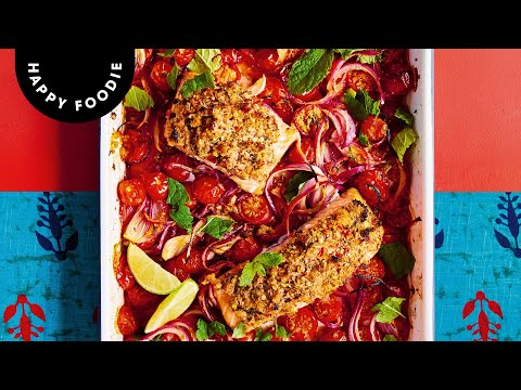 Rukmini Iyer's One-tin Chilli, Coconut and Lime Salmon with Roasted Cherry Tomatoes
