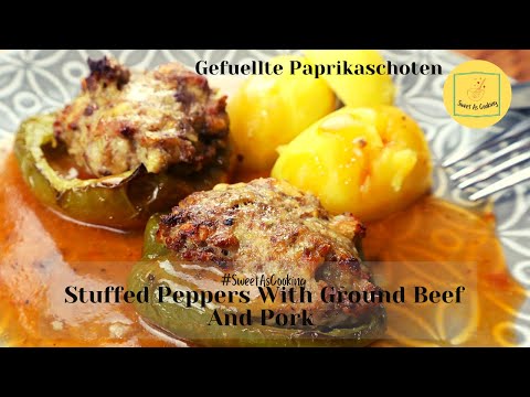 German Stuffed Peppers With Ground Beef (and Pork) With Gravy - Gefuellte Paprikaschoten