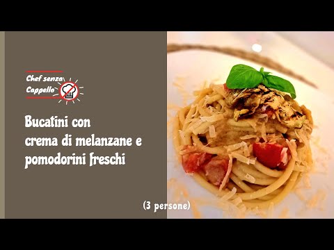 Bucatini con crema di melanzane e pomodorini freschi