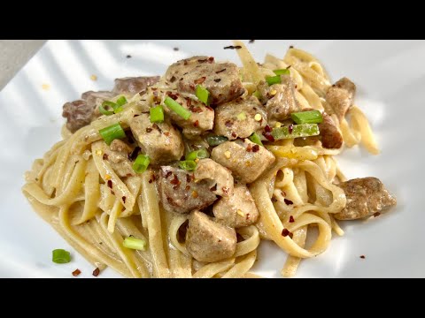 - 1Cook the fettuccine pasta according to package instructions until al dente. Drain and set aside.