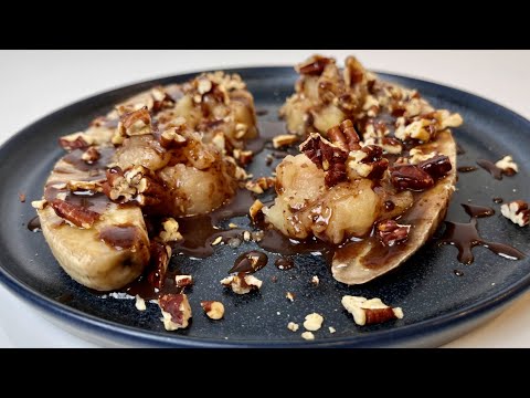 Baked Apple and Banana with Chocolate Sauce and Pecans Nuts