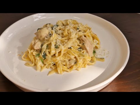 I have never eaten pasta this delicious / Recipe for Fettuccine Alfredo with Chicken and Spinach.