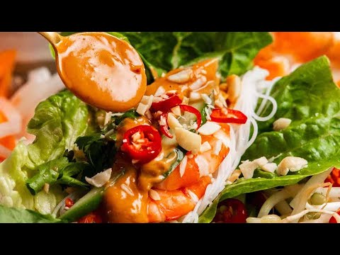 Vietnamese Prawn Lettuce Wraps with a killer peanut sauce!
