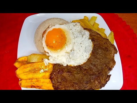 Bistec a lo pobre. Receta peruana. Poor mans steak. Бифштекс по бедному.