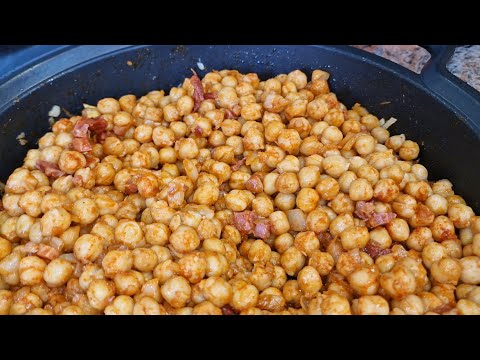 GARBANZOS FRITOS, CON CHORIZO Y PANCETA O JAMÓN, RECETA SENCILLA FACIL RAPIDA CASERA RICA Y DELCIOSA
