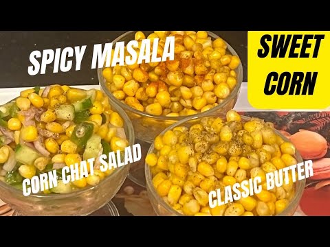 American corn 3 ways classic butter,masala spicy corn,corn salad|sweet corns recipe