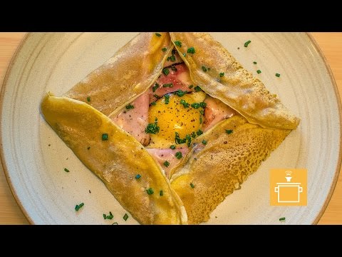 Traditional buckwheat crêpe or Galette Complète from Brittany in France.