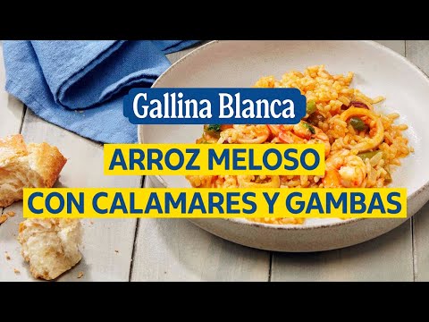 Arroz meloso de calamares y gambas. ¡Irresistiblemente delicioso! 🦑🦐