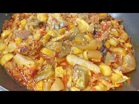 how to prepare Ghana garden eggs stew/ easy Ghana ntrowa abomu/ easy ghana yam and eggplant recipe