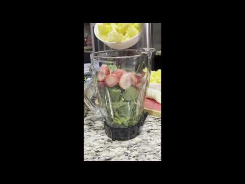 In a blender, combine the coconut water, banana, pineapple chunks, and spinach.