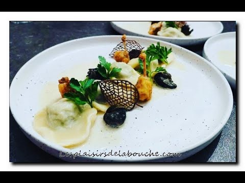Ravioles escargots et grenouille, crème à l'ail