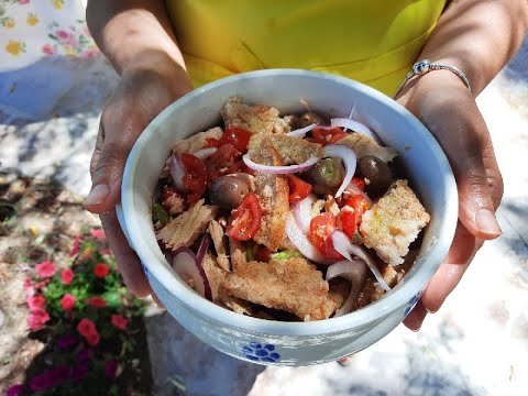 Insalata di pane con tonno, cipolla e olive