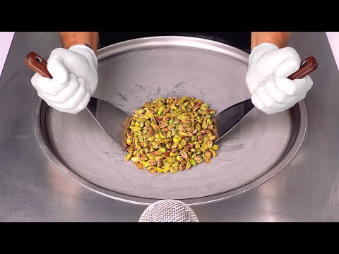 ASMR | Pistachio Ice Cream Rolls - how to make Pistachios to rolled fried Ice Cream (satisfying)