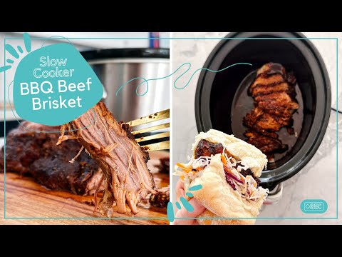 Healthy BBQ Beef Brisket Slow Cooker Recipe | How to make soft pull-apart brisket in your crock pot!