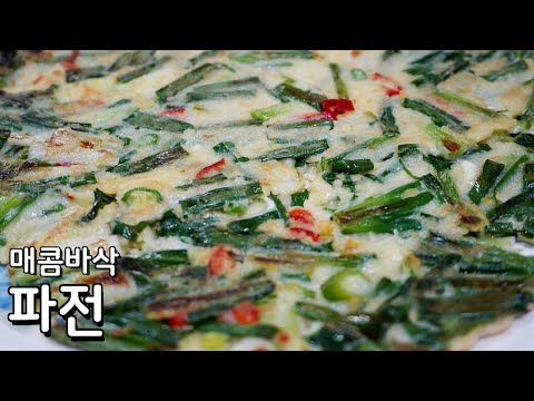 파만 넣어도 맛있는 매콤바삭한 파전 만들기