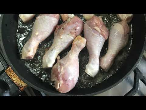 In a large frying pan, add 2 tablespoons of sunflower oil and chicken legs; roast on high heat until caramelized.