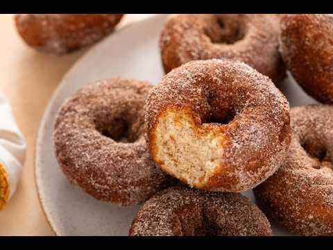 Roll the warm donuts in caster sugar before serving.