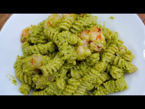 Fusilli freddi con pesto di zucchine e gamberi