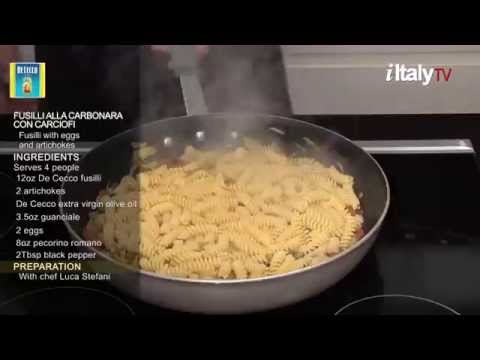 PastaMania #6. "Fusilli alla Carbonara con Carciofi" (Fusilli with eggs, guanciale and artichokes)