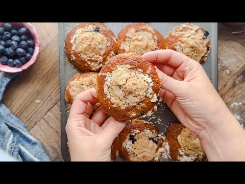 The BEST easy BLUEBERRY MUFFINS. So moist & tender!