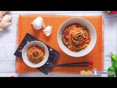 Noodles con manzo saltato e verdure