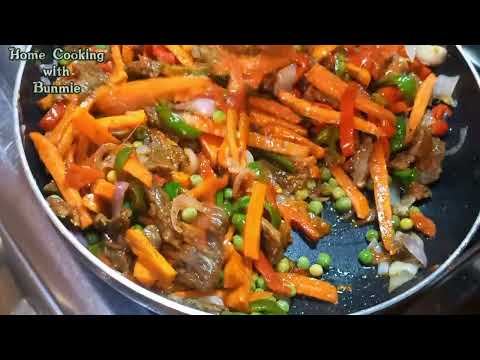 In a pan, sauté the marinated beef over high heat with a drizzle of oil and set aside.