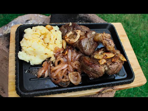 Meaty Veal Shank with Caramelized Onions and Mashed Potatoes | Cooking on Wood Fire