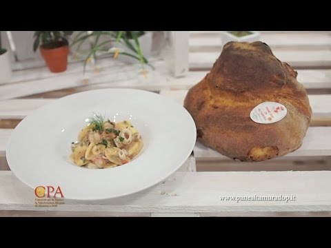 Video Ricetta - Strascinati con calamari, gamberi e olive taggiasche con PANE DI ALTAMURA DOP