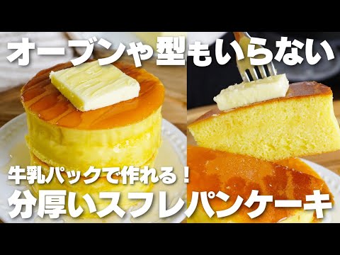 【材料4つ】オーブンや型も使わない。牛乳パックで分厚いスフレパンケーキ作り方! / 【syun cooking】