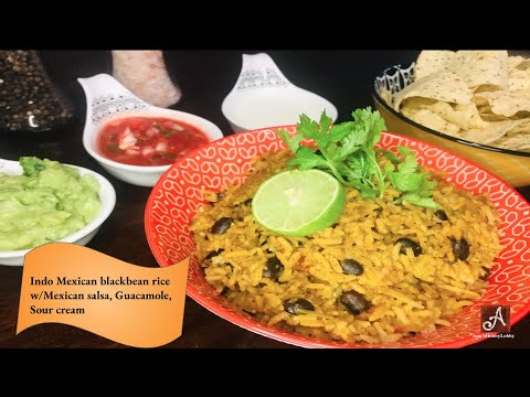 Mexican rice recipe with Guacamole, Mexican salsa and sour cream preparation in Instant pot