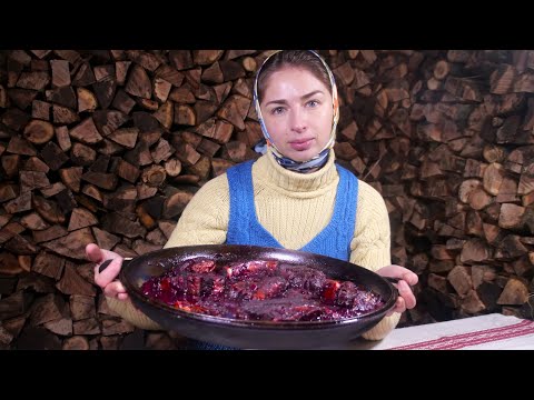 Cooking Amazing Ribs in the village! Fried ribs with beetroot KVASS. Ukrainian Food!