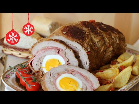 🟢 Rollo de Carne de ternera rellena de carne picada, beicon, jamón y huevo | Sin horno