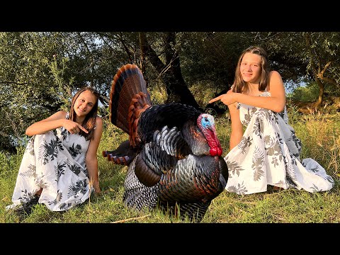 Large Male Turkey roasted on a steel spit in nature #cooking_ turkey_in_nature #turkey_recipe