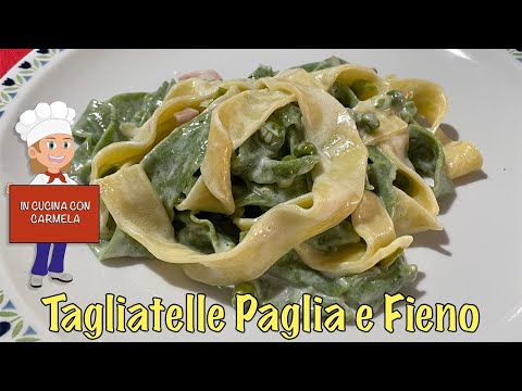 Ricetta TAGLIATELLE paglia e fieno con panna piselli e prosciutto cotto | pasta fatta in casa