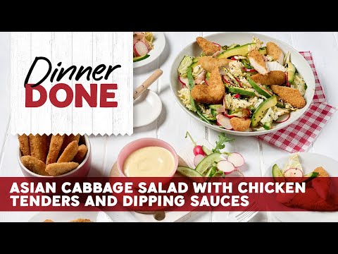 Recipe For A Well-Balanced Dinner - Asian Cabbage Salad With Chicken Tenders And Dipping Sauces